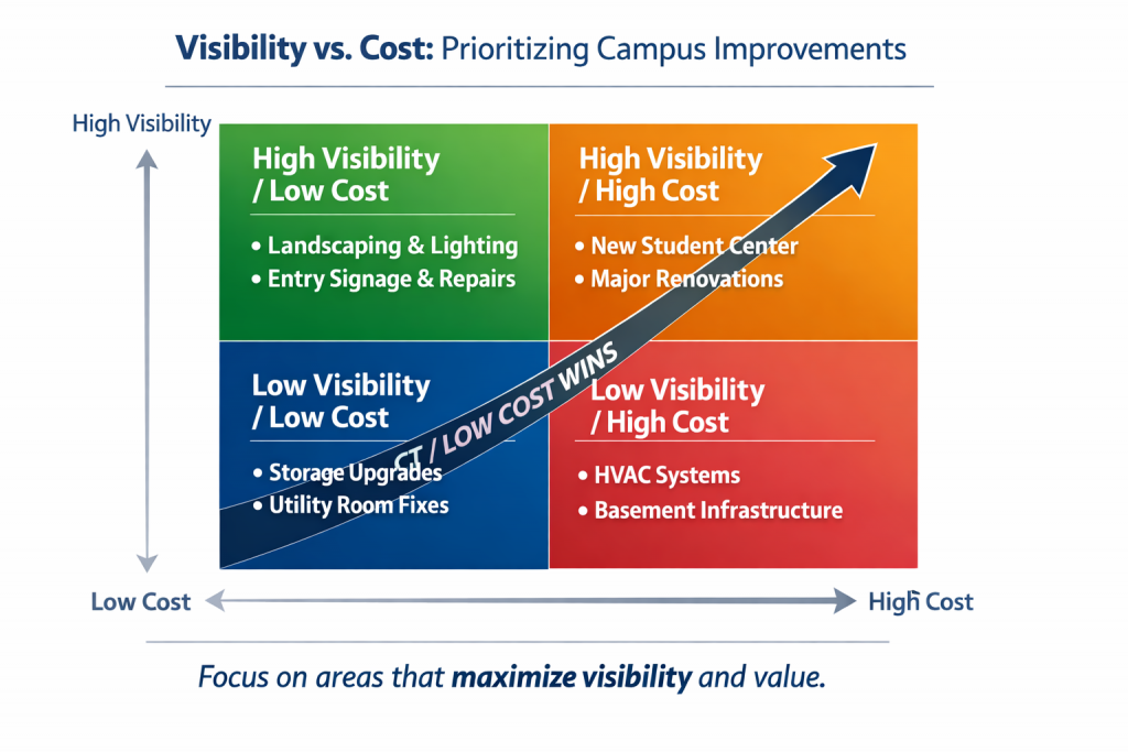 This paper explores how targeted, data-driven investments in high-visibility areas can significantly improve campus perception, support recruitment and retention, and strengthen institutional positioning—without the need for major construction projects.